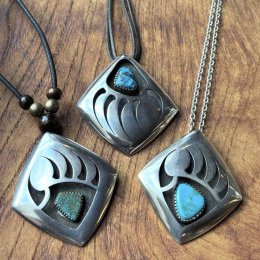 一目でわかる繊細かつ圧倒感溢れる作品ばかりで名誉ある「Arizona Living Treasure」受賞者の故ホピ族「Robert・Lomadapki」作ターコイズ付ベアパウペンダント新入荷!