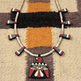 美しいモザイクインレイで仕上がったズニ族「Ola・Eriacho」作ハートモチーフネックレス&ピアス新入荷!