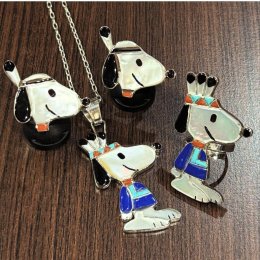 大人気キャラクターをモチーフにしたズニ族トップアーティストの一人「Don・Dewa」作スヌーピーリング&ペンダントトップ入荷!