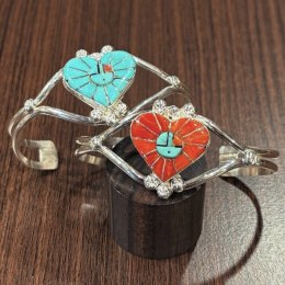 美しいモザイクインレイで仕上がったズニ族「Ola・Eriacho」作ハートモチーフバングル新入荷!