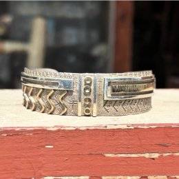 代名詞であるペトログラフモチーフ×ゴールドアクセントが上品な仕上がりの若手ながら高評価を得ていた故ズニ族「Myron・Panteah」作バングル新入荷!