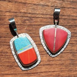 一目で分かるオーバレイ&テクスチャーでカチーナをデザインしたホピ族「Ronald・Wadsworth」作ペンダントトップ新入荷!