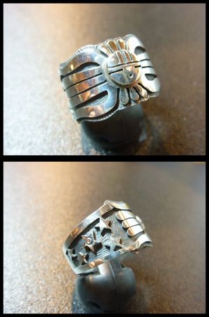人気定番のサンフェイス×ケトーモチーフをオーバレイした、ホピ族のリングになります。