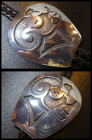 リアリティー溢れるシープをデザインした、ホピ族のボロタイになります。