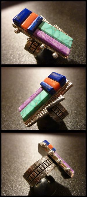 高級感溢れるストーンインレイが素晴らしく美しい、ホピ族のリングになります。