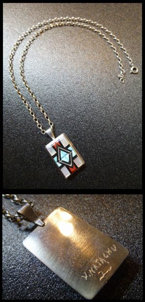 色カラフルなインレイワークが綺麗な、ズニ族のペンダントトップになります。