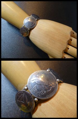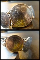本物ハーフダラーとクォーターダラーがセットされた、タオスプエブロ族のバングルになります。