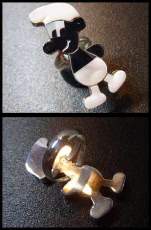 可愛らしいキャラクターがインレイワークされた、ズニ族のリングになります。