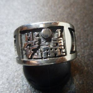 ものすごく細かいオーバレイで仕上がった、ホピ族のリングになります。