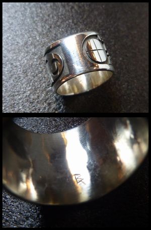 様々なモチーフをデザインオーバレイされた、ホピ族のリングになります。