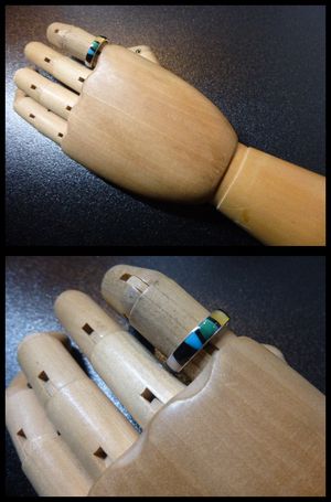 色カラフルなマルチカラーストーンでインレイが施された、ズニ族のリングになります。