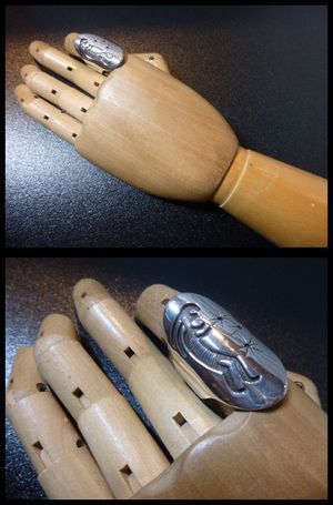 ホピ族オーバレイの第一トップアーティスト「ヴィクター・クチュワティワ」作リングになります。
