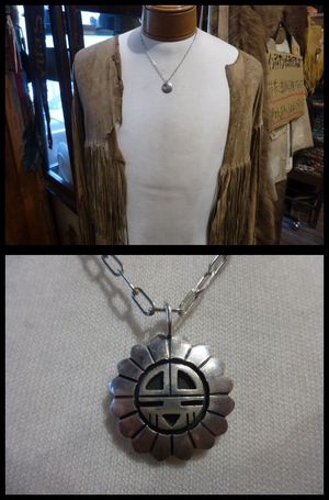 個性溢れるサンフェイスをがデザインオーバレイされた、ホピ族のペンダントトップになります。