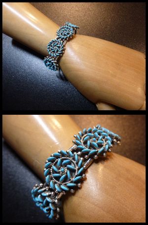 素晴らしく美しくニードルポイントをデザインした、ズニ族のバングルになります。