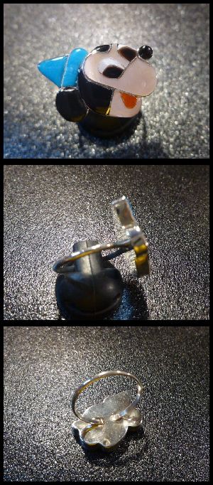 可愛らしいキャラクターがインレイワークされた、ズニ族のリングになります。