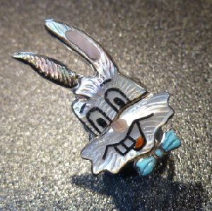 可愛らしいキャラクターをデザインインレイした、ズニ族のリングになります。