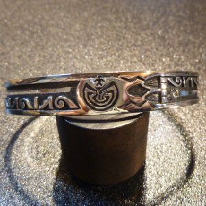 見事なオーバレイ&個性あるデザインが綺麗な、ホピ族のバングルになります。
