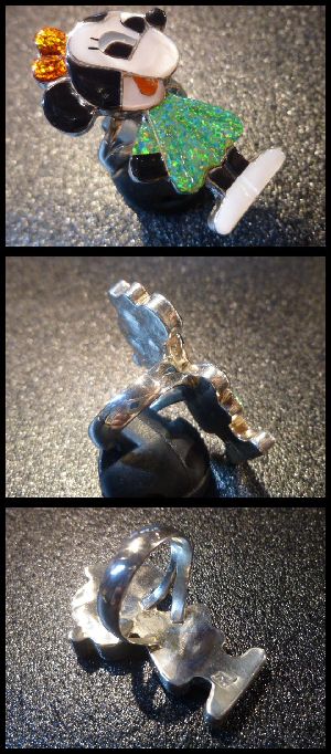 可愛らしいキャラクターがインレイワークされた、ズニ族のリングになります。
