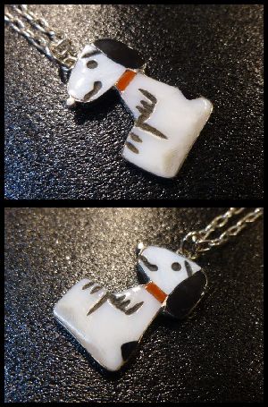 可愛らしいキャラクターがインレイワークされた、ズニ族のペンダントトップになります。