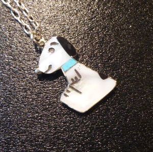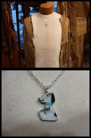 可愛らしいキャラクターがインレイワークされた、ズニ族のペンダントトップになります。