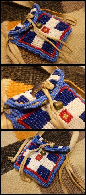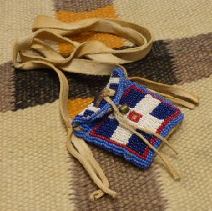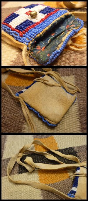 独特のオーラが魅力あふれる、プレーンインディアン部族作ミニポーチネックレスになります。
