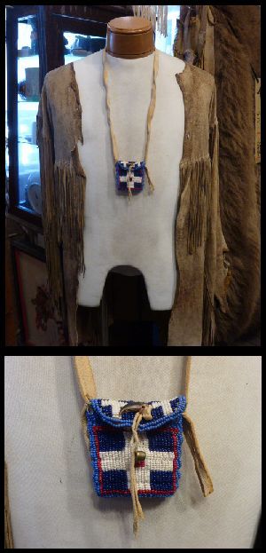 素材はディアスキン、フロントにビーズワークが施された、プレーン工芸品がお好きな方には