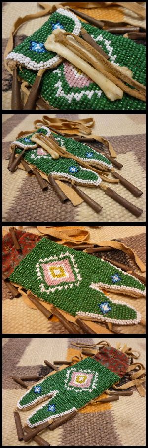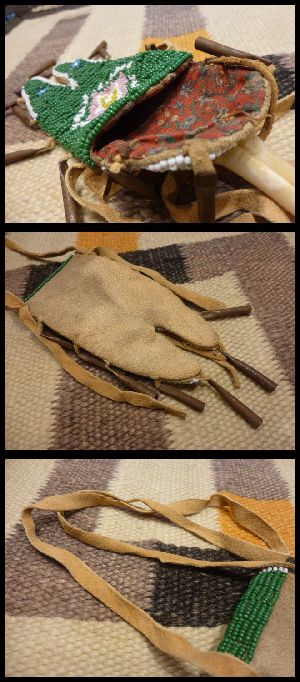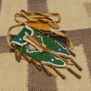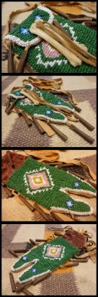 素材はディアスキン、フロントにビーズワークが施された、プレーン工芸品がお好きな方には