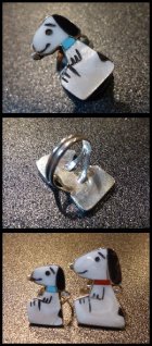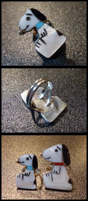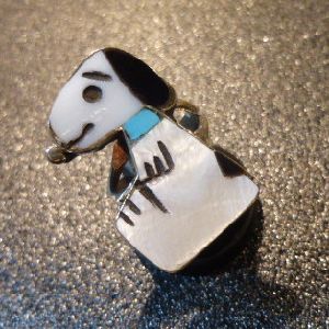 可愛らしいキャラクターがインレイワークされた、ズニ族のリングになります。