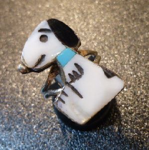 可愛らしいキャラクターがインレイワークされた、ズニ族のリングになります。