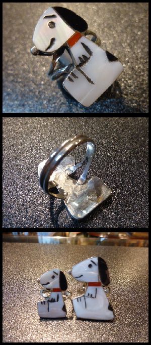 ズニ Shenel・Comosona インレイ Sサイズスヌーピー リング16号