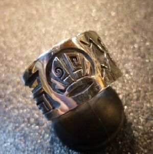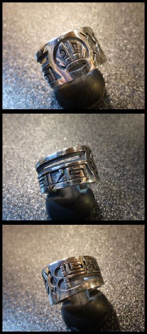 見事なオーバレイ&個性あるデザインが綺麗な、ホピ族のリングになります。