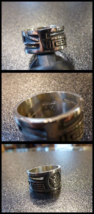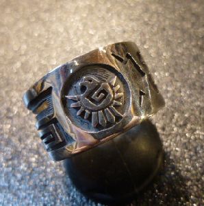 見事なオーバレイ&個性あるデザインが綺麗な、ホピ族のリングになります。
