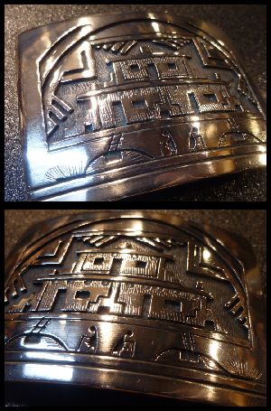 ホピ族オーバレイの第一トップアーティスト「ヴィクター・クチュワティワ」作バックルになります。