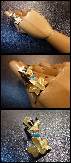 可愛らしいキャラクターがインレイワークされた、ズニ族のリングになります。