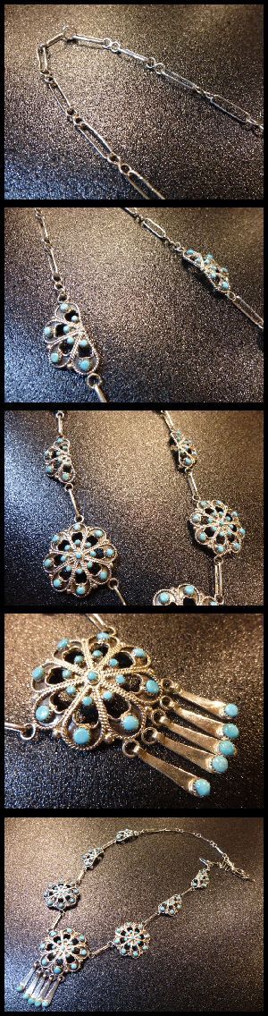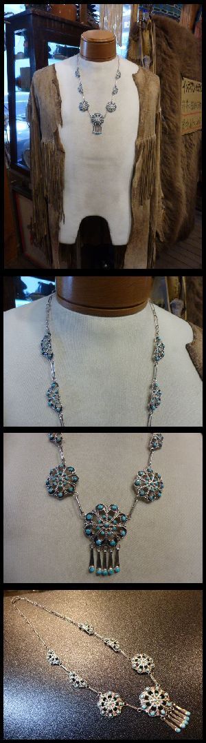 ズニ Murray&Arlene・Tsatie クラスター ターコイズ ネックレス約63cm&ピアスセット