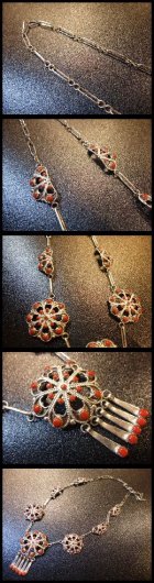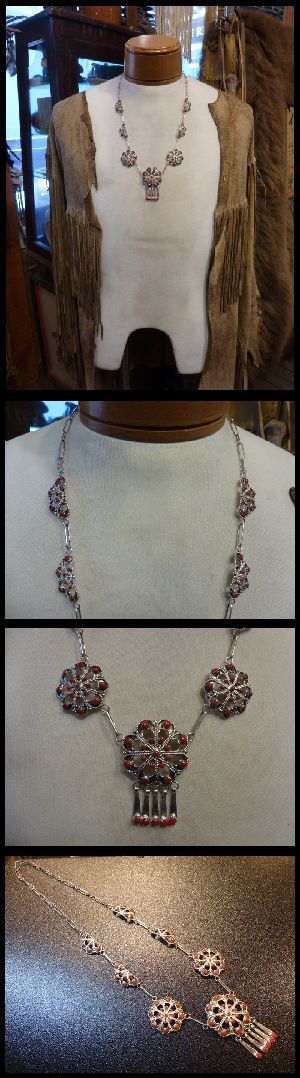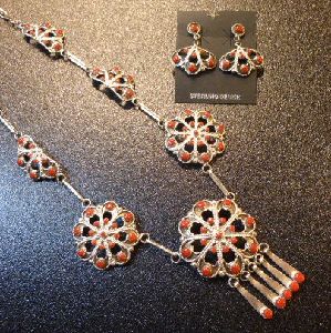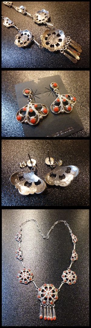 ズニ Murray&Arlene・Tsatie クラスター レッドコーラル ネックレス約63cm&ピアスセット