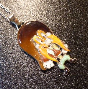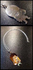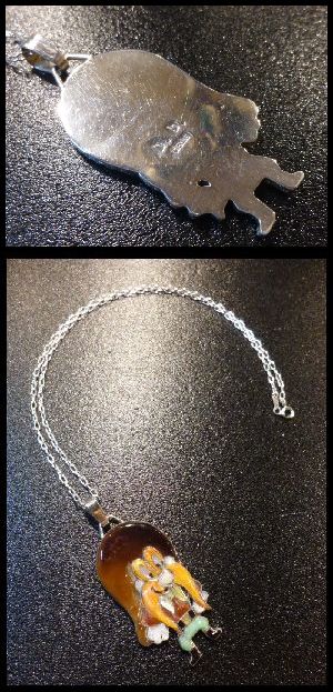 可愛らしいキャラクターをデザインインレイした、ズニ族のペンダントトップになります。