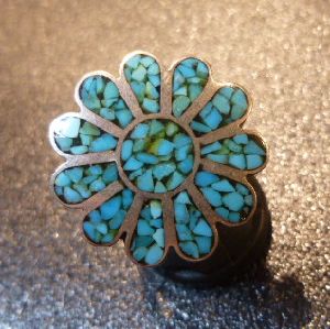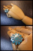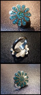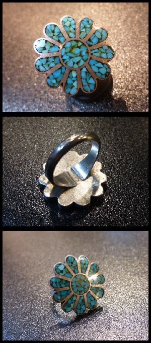 ターコイズ×チップインレイでフラワーがデザインされた、ズニ族のリングになります。