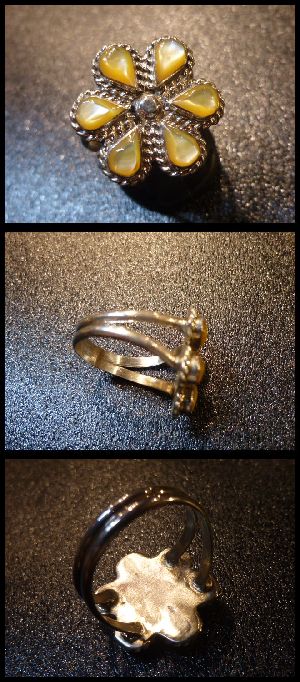 可愛いイエローシェルで完成された、何にでも合わせやすいリングです。