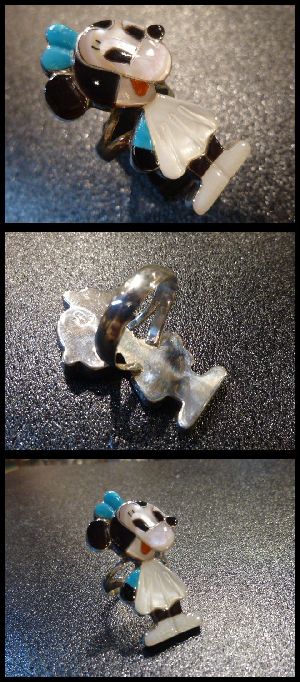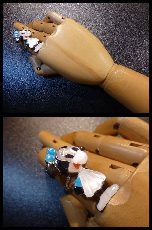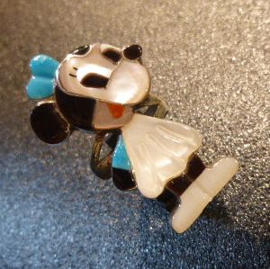 可愛らしいキャラクターがインレイワークされた、ズニ族のリングになります。