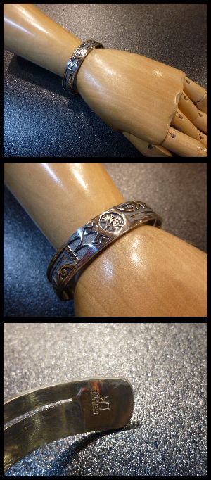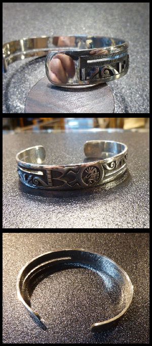 見事なオーバレイ&個性あるデザインが綺麗な、ホピ族のバングルになります。