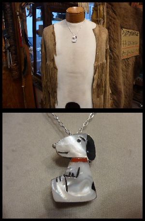 可愛らしいキャラクターがインレイワークされた、ズニ族のピンブローチ兼ペンダントトップになります。