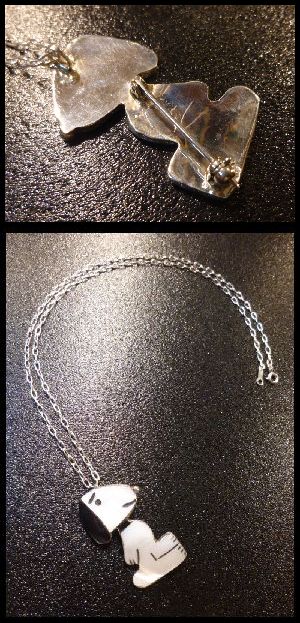 可愛らしいキャラクターがインレイワークされた、ズニ族のピンブローチ兼ペンダントトップになります。