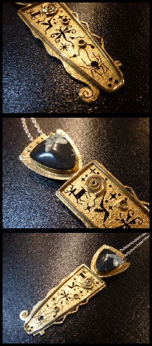 シルバーベースに各所14金ゴールドアクセントとアンモナイトをベストマッチングさせた、