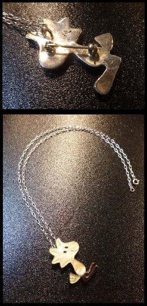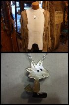 可愛らしいキャラクターがインレイワークされた、ズニ族のピン付きペンダントトップになります。