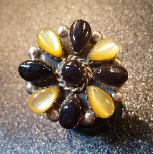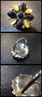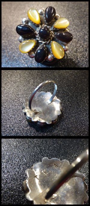 ものすごく可愛いカラーストーン×クラスターの、ズニ族のリングになります。
