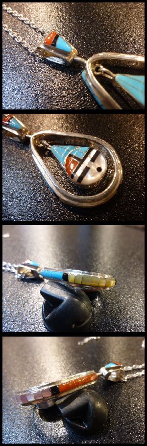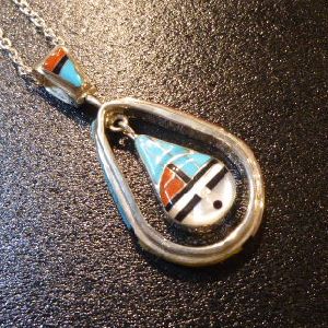見事なサンフェイスインレイが施された、ズニ族のペンダントトップになります。
