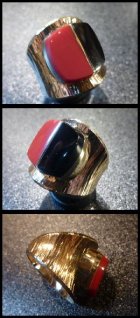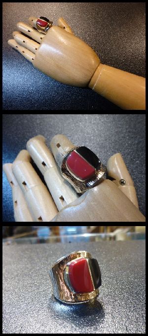 非常に高価でインディアンジュエリーでは珍しいロザリタ(赤)を使用した個性ある