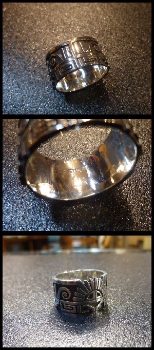 見事なオーバレイ&個性あるデザインが綺麗な、ホピ族のリングになります。