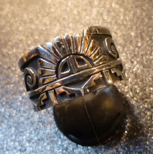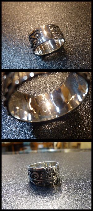 見事なオーバレイ&個性あるデザインが綺麗な、ホピ族のリングになります。